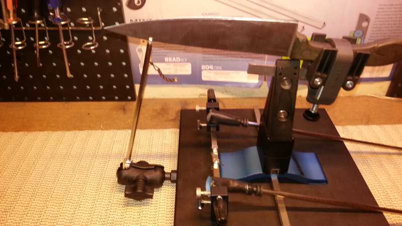 Ram also makes a grip attachment which works very well. This is a different approach which lets you mount the tip of the blade closer to the vise, then grips the handle to steady the near end of the knife. Somebody here has some photos of it…