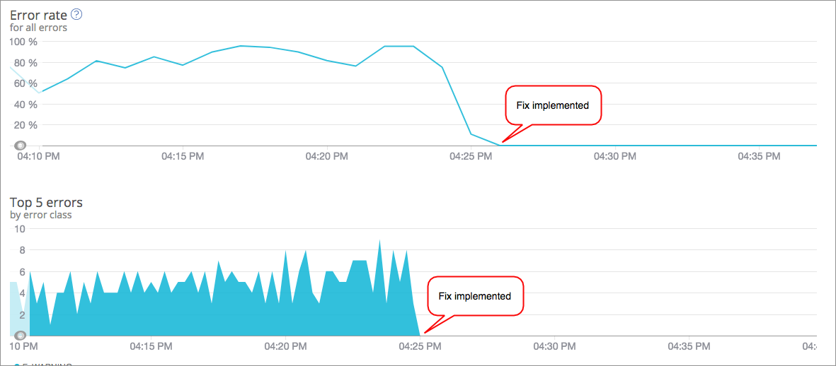 OK, I think we’ve found and fixed the underlying problem that was causing our performance (slowness) problems. Our Private Message wordpress plugin was looking for a file that wasn’t there (inadvertently deleted at some point, oops) and now we’ve restored that file. This chart shows our errors before vs after the fix.