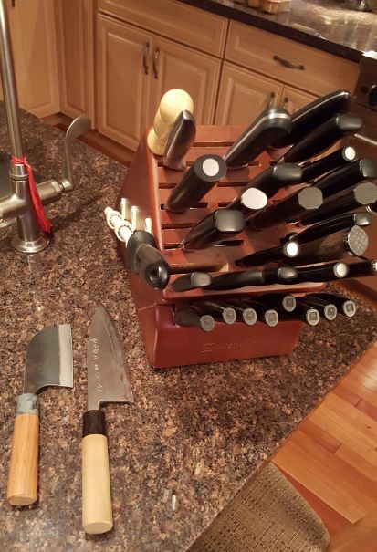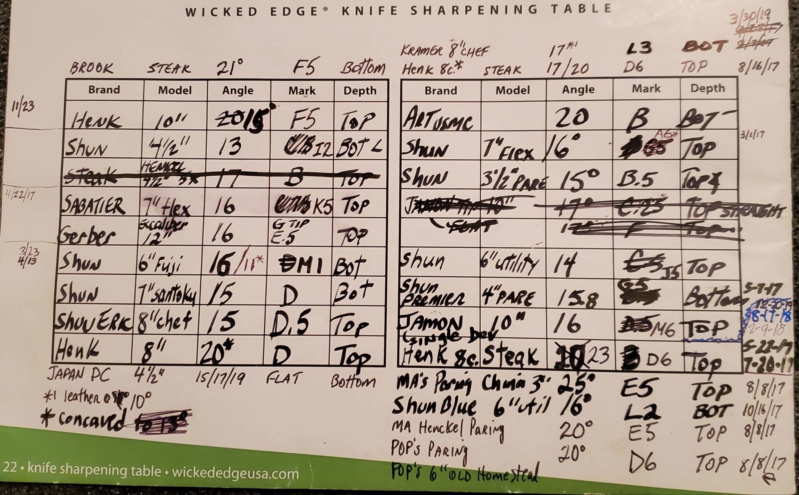 Like “Readhead’s” knife block full illustrates, I have another sharp knife I can use to avoid forcing me to reprofile my knives, that have been touched-up with other devices. I employ, as those gentlemen do, a detailed and complete sharpening log and utilize my alignment and/or advanced alignment guides, that, with experience, now allows me to position the knives for touch-ups just like I had originally clamped, profiled and sharpened them. The W.E. touch-ups are quick and easy, matching my original edges with very little effort. That’s the beauty of this sharpener, it allows repeated precision, accuracy and sharp edges. That’s why I try to only use the W.E. With a collection of knives there really is no reason not to.