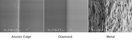 What is more important is whether the blade can make the cut without being chipped or folded. I can make a carbon steel straight razor sharper than a diamond microtome or obsidian scalpel, but the question is whether it will perform better for a particular application. Diamond microtomes are very keen, but the bevel angle is too high to cut anything but thin, flexible sections, and if the bevel angle were lower, they would be even more fragile than they already are.