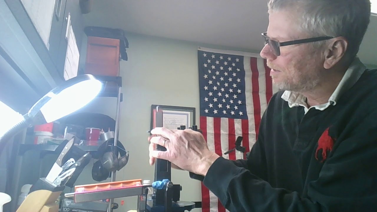 He has only been using his WE 2 months. One thing I thought he is doing wrong is has a heavy touch with his stones which I found only serves to make it harder and longer to remove the scratches from the previous stones if you are going for a clearer mirror finish. He did say in the vid he is in the middle of sharpening a 27 knife set for a friend, so maybe he rushes as he is just throwing a kitchen knife type sharp edge. Unless you have a lot of band aids I would not rush working the stones as by the 1500 grit these edges get “wicked” sharp (git it?). Be real careful geting too close to these edges with a loupe. I just got a 20X lighted loupe off amazon for like $9.99. Its great, but im going to also get a 10x (also has a bigger field of view) as its probably better as the 20x forces you too close to the blade especially, if its still clamped.