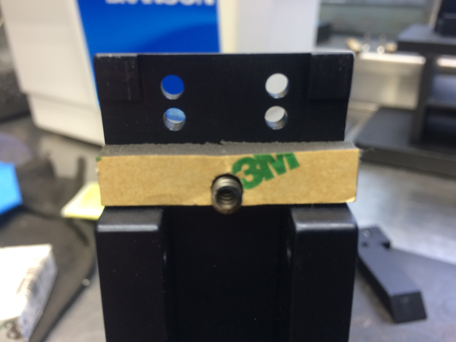 It works out that is the exact width of the sides of the Gen 3 vise, meaning you could tape the side openings with one piece on each side, and being semi-gloss black, would blend in inconspicuously instead on going the way I did with the steel (or like the masking tape I used at first). A piece on the front (with a hole punched in it for the shaft) and piece on the back. That should seal it up pretty good and still look good as well.