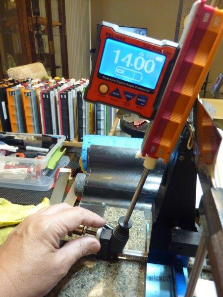 I’d also like to add that taking angle readings while the stone is allowed to rest gently against the blade is not good practice. There is some amount of looseness in the ball joints and between the rods and the handles. Add to this the fact that accelerometers are sensitive enough to detect vibrations caused by someone walking through the room, or by a truck driving by and there is a good potential for error, so I always do the following: