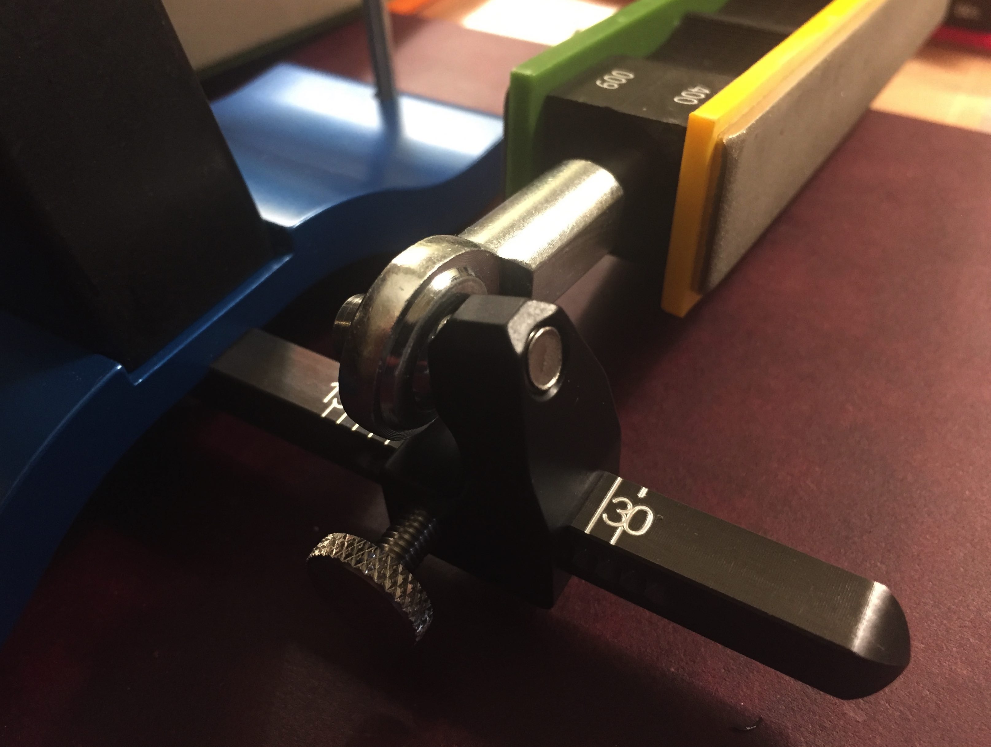 Just purchased the new WE100… Ive been watching videos learning the technique for setting precision angles with a digital cube for such. The new L bracket doesn’t have the ability to micro adjust the angle. My question is, what is the technique for fine tuning the angle setting with these new guide rods?