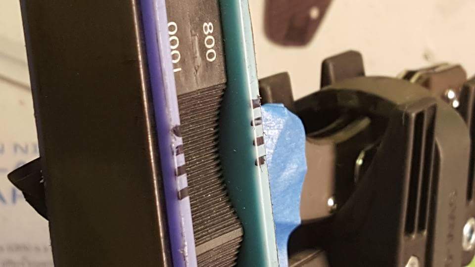 We use the 1000 grit stone to mount the angle cube, we use the 1000 grit stone to angle match with a sharpie…what about using the same 1000 grit stone to find the sweet spot while doing a sweep?I marked some graduated lines on the SIDE and it works great while streamlining the knife setup even more.