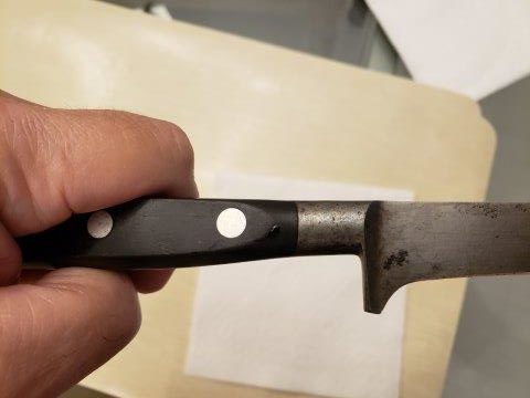 Marc, on your pictured boning/fillet knife on the right side of the pic . . . what is the meaning or design of the squared off part of the knife that drops down in front of the knife’s handle? My friend asked me as most of his fillet knives have that area dropping down to a point. I said I’d ask in the forum.