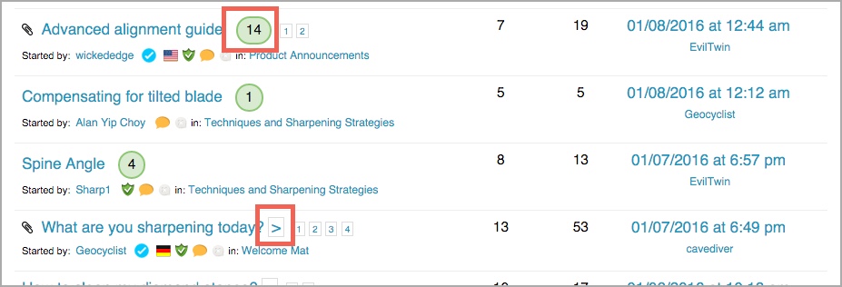 [attachment file=“smiley options.jpg”]The green circles, and numbers, should show your count of unread posts, per topic.